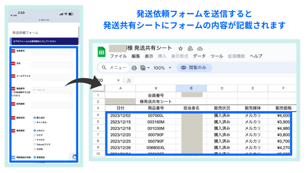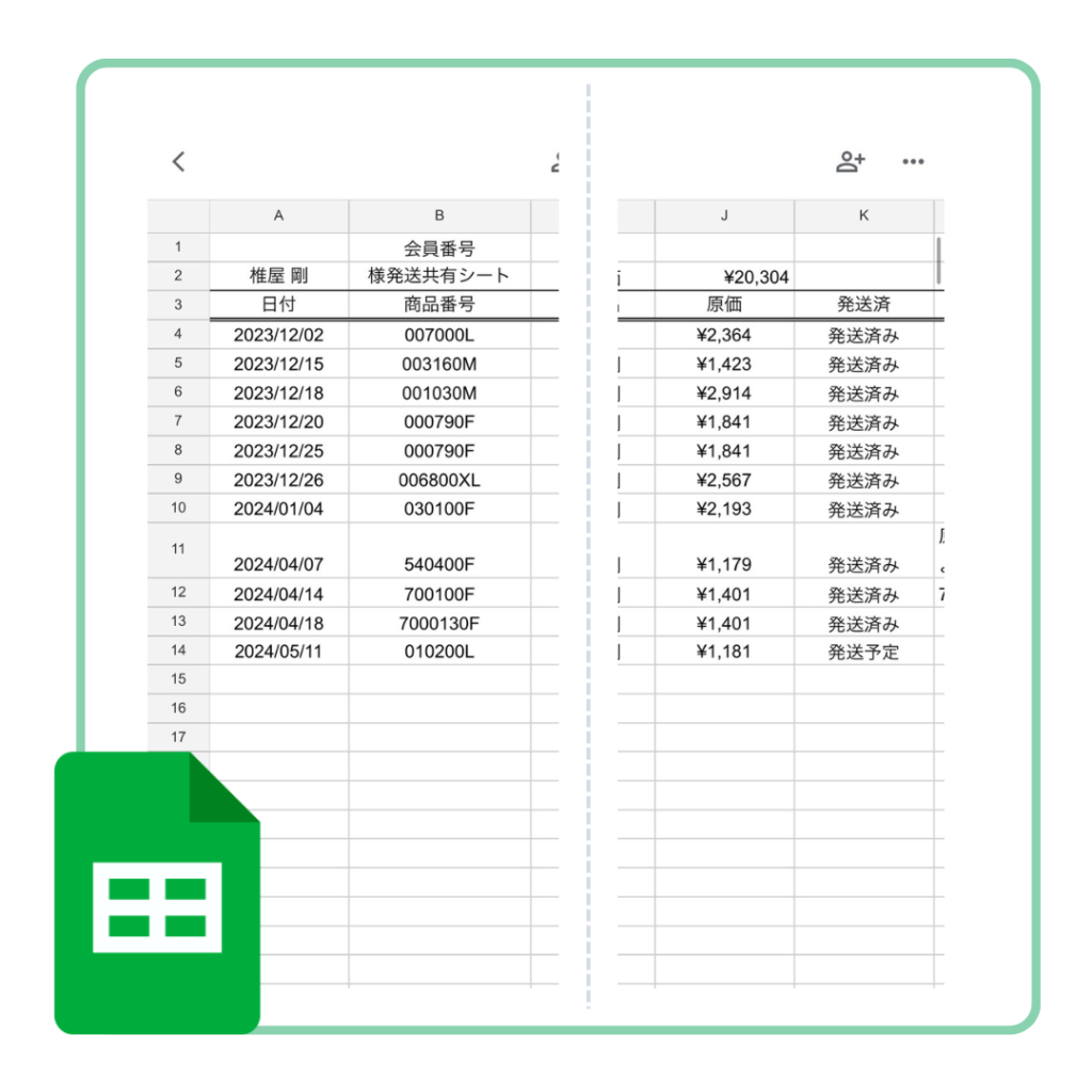 発送共有シートは、発送依頼を送った際に発送状況やご自身の発送履歴を確認するための大切なデータです。